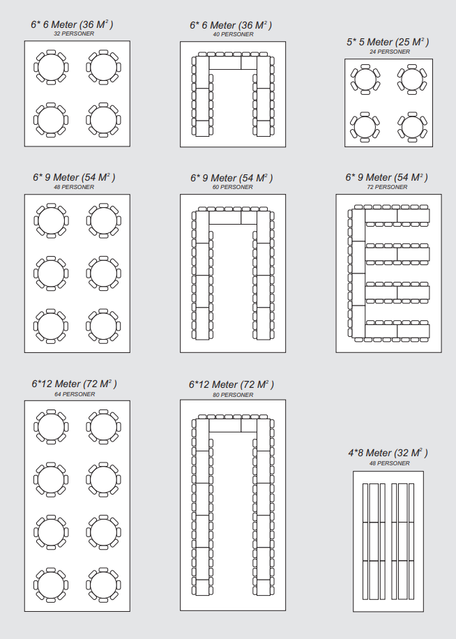 Som en grunnregel bør man ha minst 1 m2 pr. gjest.