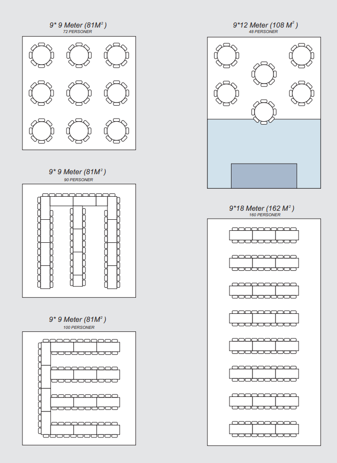 9 x 18 telt med 9 runde bord, 180 cm (90 gjester)